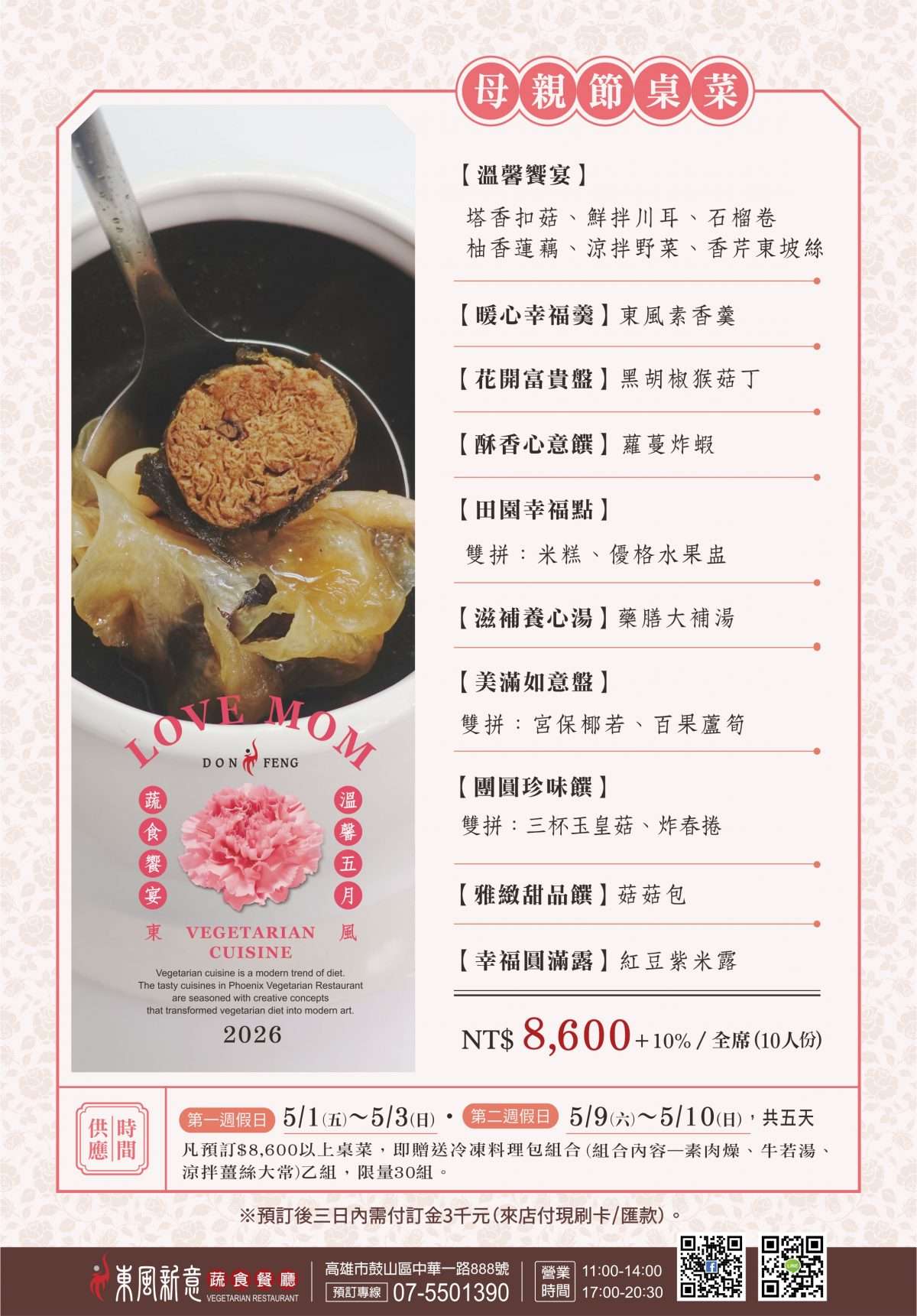 ※桌菜請至少提前二天預訂。